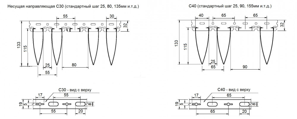Несущая направляющая с произвольным шагом: