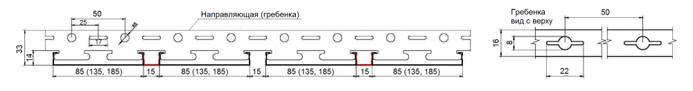 Панели могут поставляться любой длины от 1000 мм до 6000 мм, несущая направляющая (гребенка) имеет стандартную длину 4000 мм.